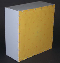 This self-complementary Archimedean spiral antenna is a frequency independent antenna. It is a lightweight medium-gain array designed to receive a circularly polarized wave. The Archimedes spirals typically cover a 10 to 1 frequency range while maintaining essentially constant impedance over the band. The circularly polarized antennas have been designed for broad-beam, broadband applications and provide a compact, lightweight antenna configuration which can be easily flush mounted. They are widely used in systems whose primary functions are surveillance, direction finding and telemetry. This Spiral antenna is mounted in a square structure and made on FR4 .063” fiberglass with a flat front face that can be easily mounted in the side of a vehicle. It is terminated and loaded with absorbing foam. Its low frequency is a function of the size and depth of the cavity, while the upper frequency is limited by the detail of the center structure. It has greater than a 10 dB F/B ratio before mounting into a vehicle. Electrical Specifications